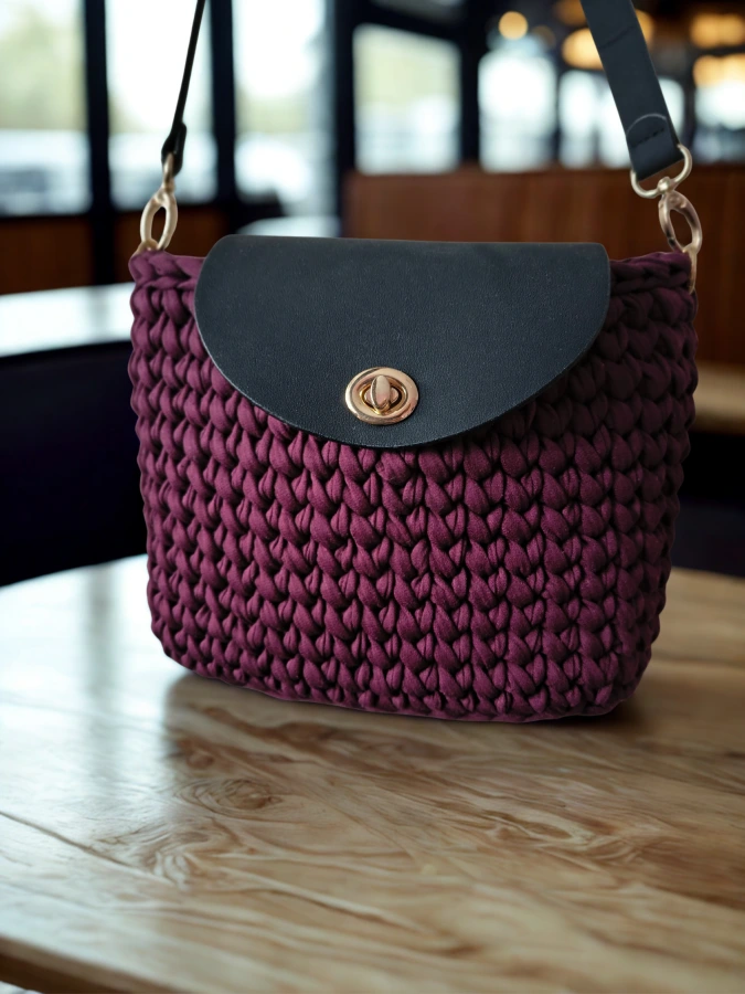 Háčkovaná kabelka s doplnkami z Eko kože.